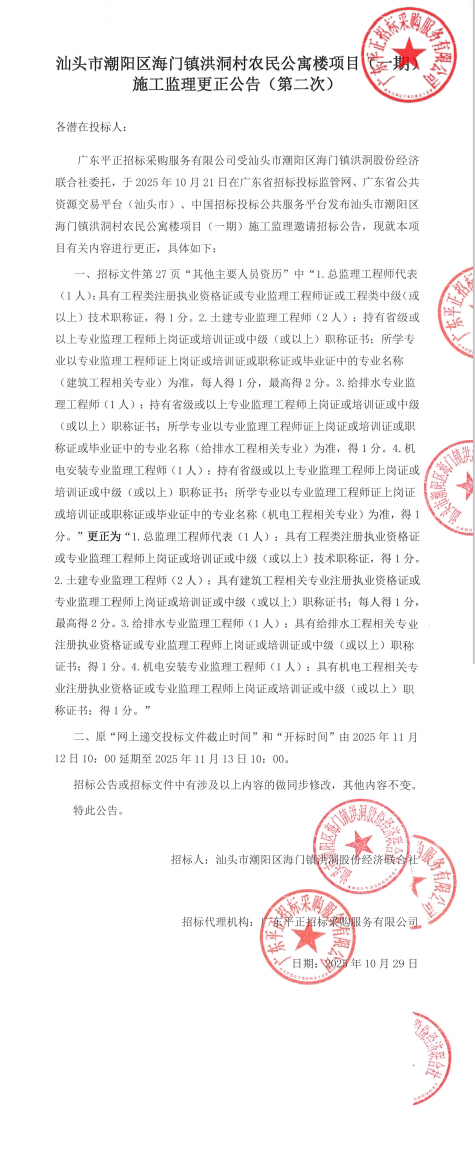 汕头市潮阳区海门镇洪洞村农民公寓楼项目(一期)施工监理