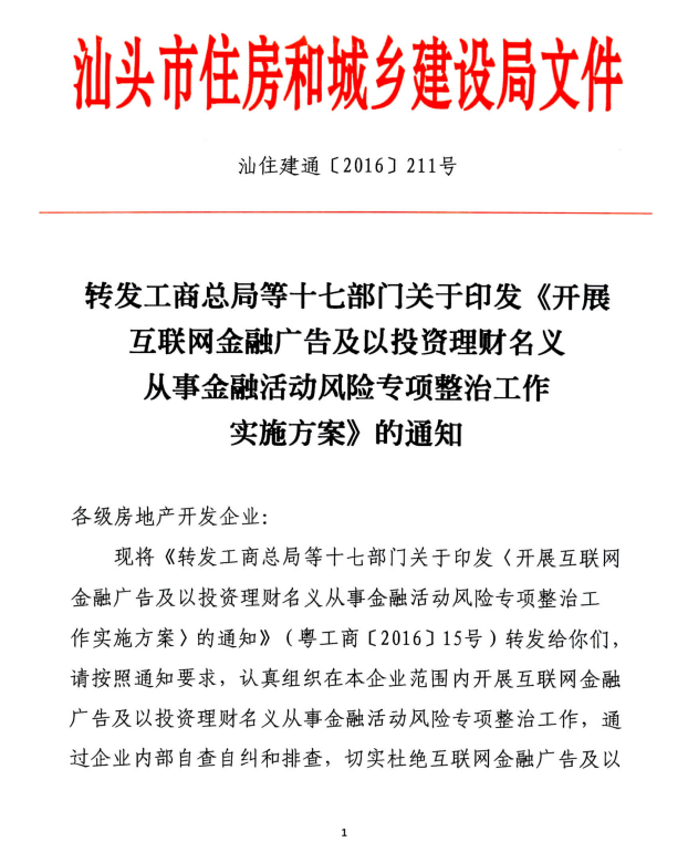 转发工商总局等十七部门关于印发《开展互联网金融广告及以投资理财名义从事金融活动风险专项整治工作实施方案》的通知