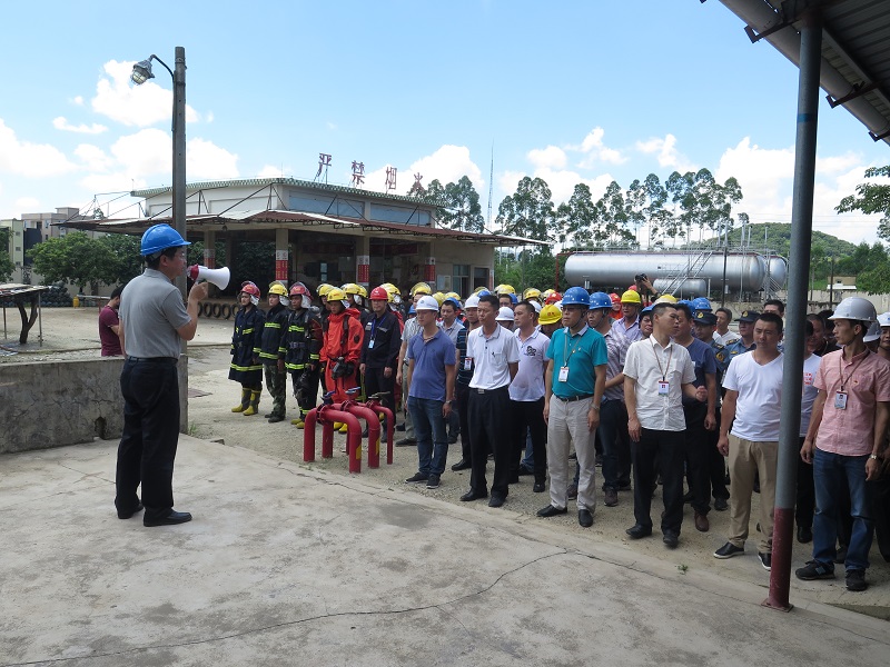 演练围绕指挥协调、警戒管制、医疗救护、消防灭火等环节展开,共动用警车、消防车、120救护车、安监应急车、环境监测车、电力,水务应急车等各类装备约30台(套),参演人员160多人,经过30分钟的应急救援,阀门堵漏成功,伤员得到妥善救治。此次“双盲”应急演练圆满成功,效果良好。