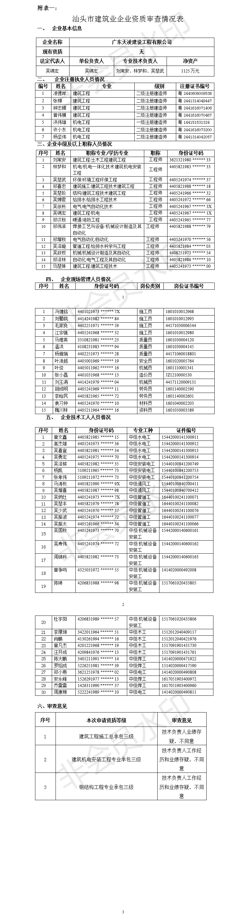关于建筑业企业资质审查意见的公示汕住建公示〔2018〕119号