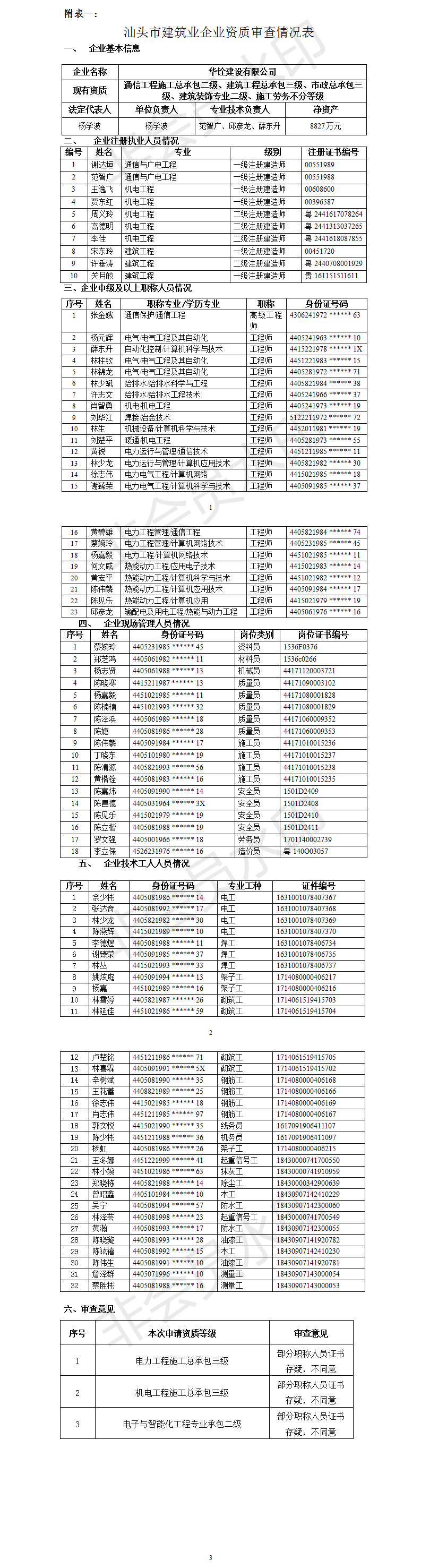 关于建筑业企业资质审查意见的公示汕住建公示〔2018〕120号