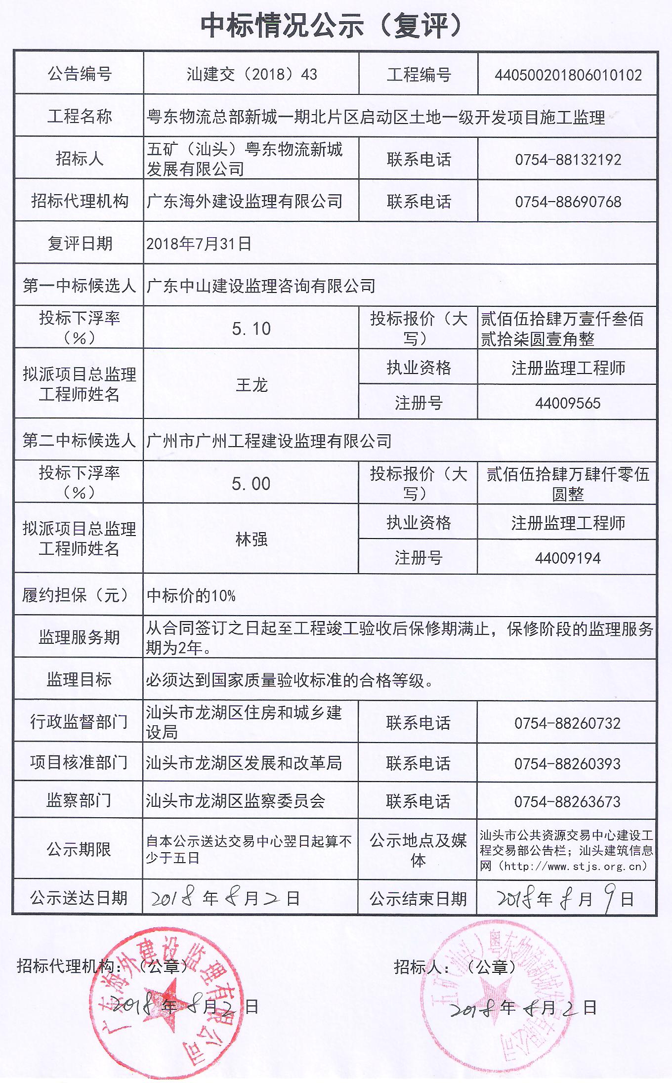 | 公告编号 | 汕建交(2018)43 | 工程编号 | 440500201806010102 |