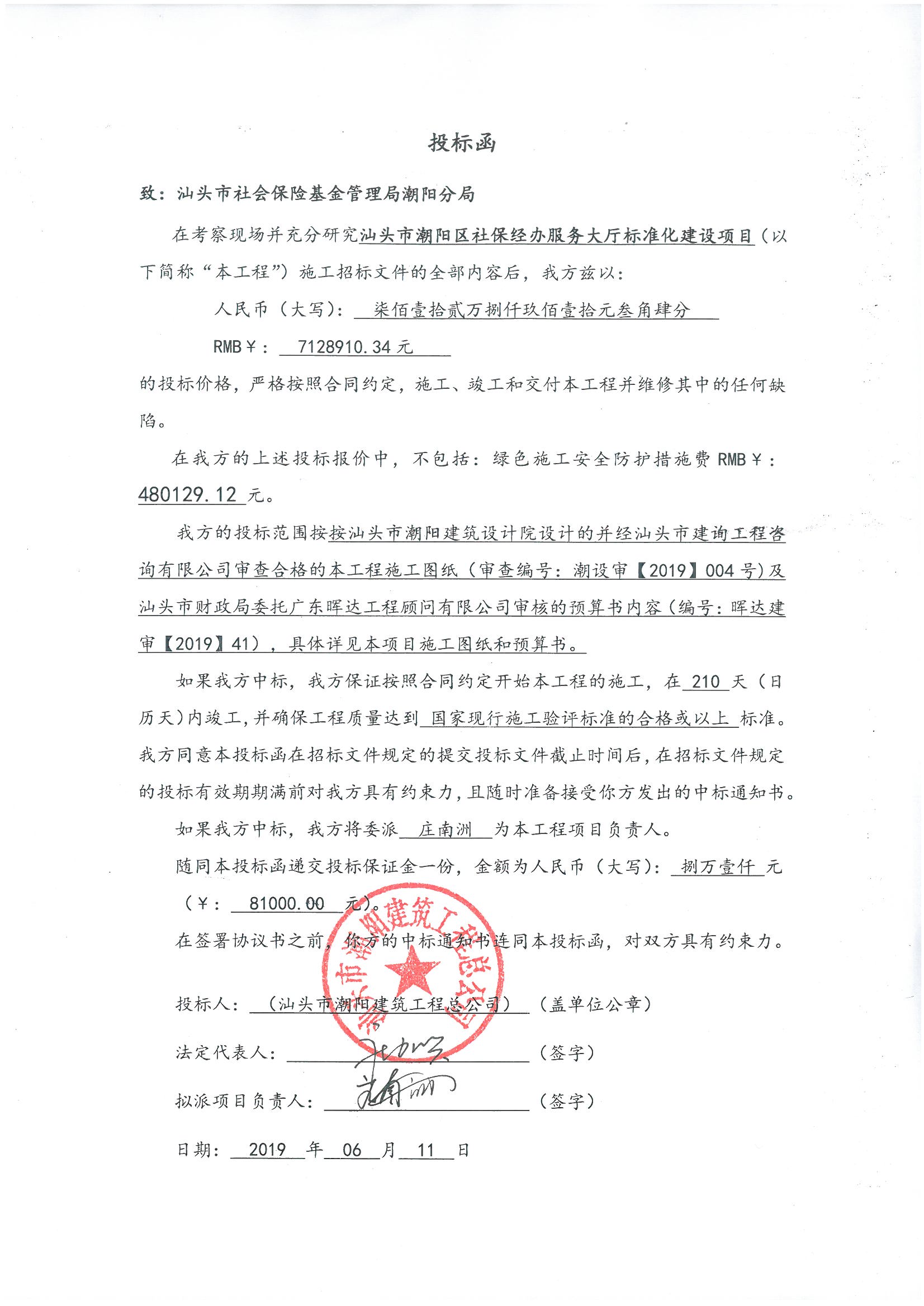 | 投标价 | 7128910.34 | 大写 | 柒佰壹拾贰万捌仟玖佰壹拾元叁角肆分 |