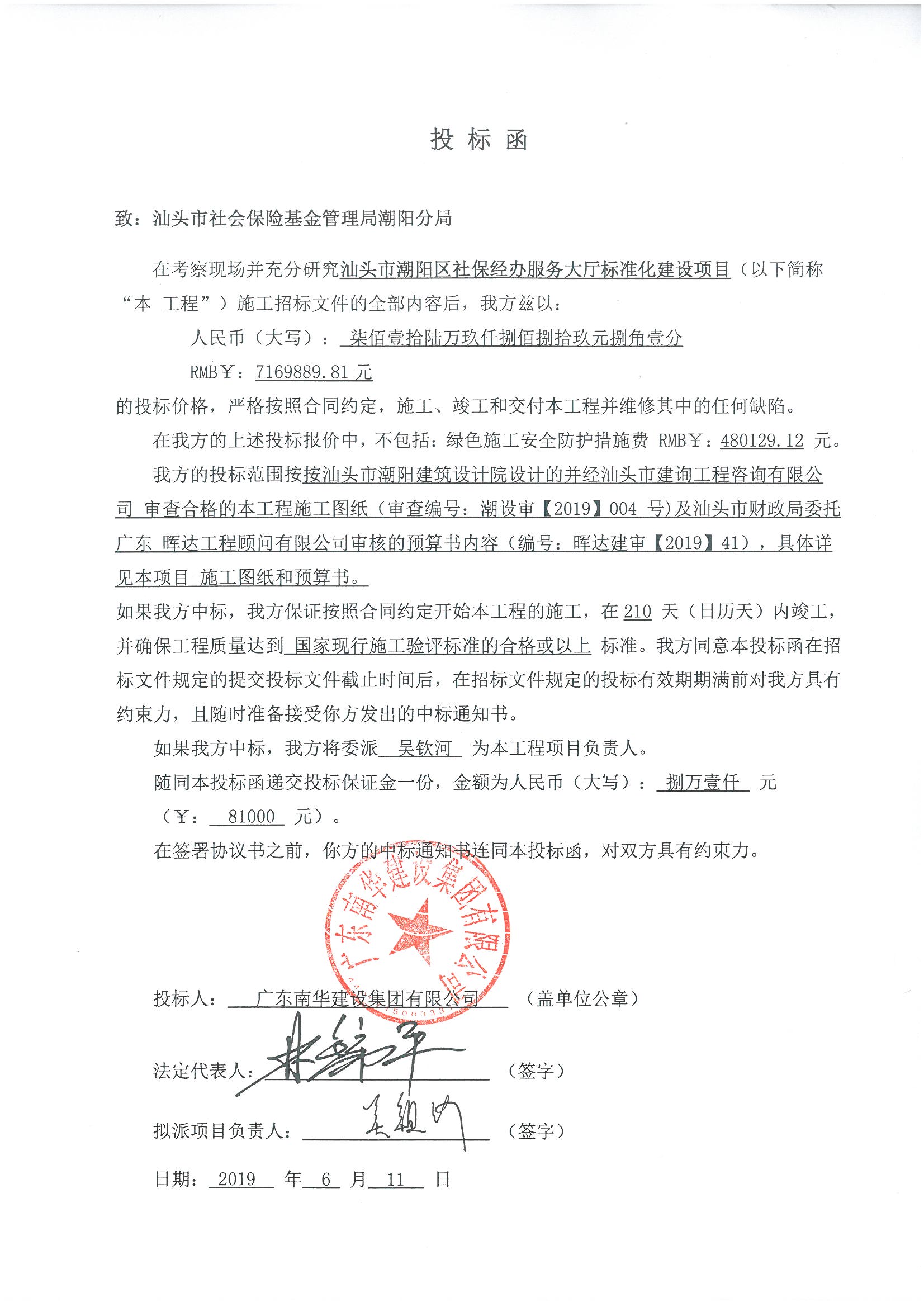 | 中标候选人之三 | 广东南华建设集团有限公司 | ||